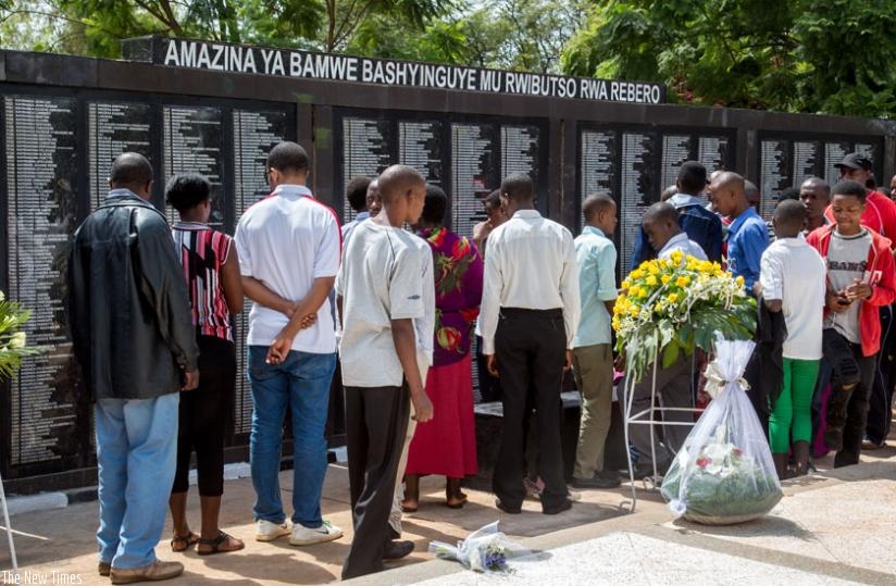 Mourners view names of people who were killed during the 1994 Genocide against the Tutsi that are laid at Rebero Memorial site while marking the end of the commemoration week yeste....