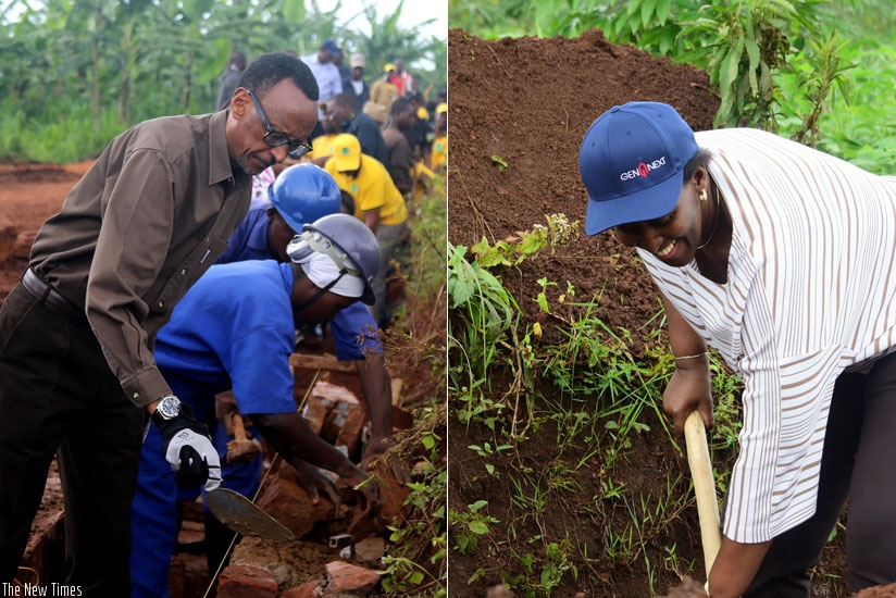 President Kagame and First Lady Jeannette Kagame join residents of Kayonza District for Umuganda yesterday. The Head of State urged residents of Kayonza to capitalize on the strate....