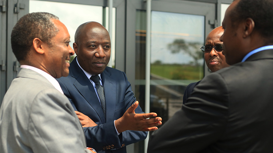 The Minister for Local Government Anastase Shyaka (right) welcomes Prime Minister Edouard Ngirente to a two-day retreat of over 200 leaders involved in local governance, which is taking place in Nyamata, Bugesera District yesterday. The premier urged local leaders to uphold integrity, provide good service, be patriotic, respect time and promote the unity of Rwandans, among other things. Courtesy.