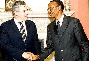 Brown and Kagame at Downing Street in London on Wednesday. (Photo/PPU)