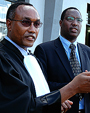 Mitali (R) and  party lawyer Jean Bosco Kazungu outside the High Court recently. (File Photo)
