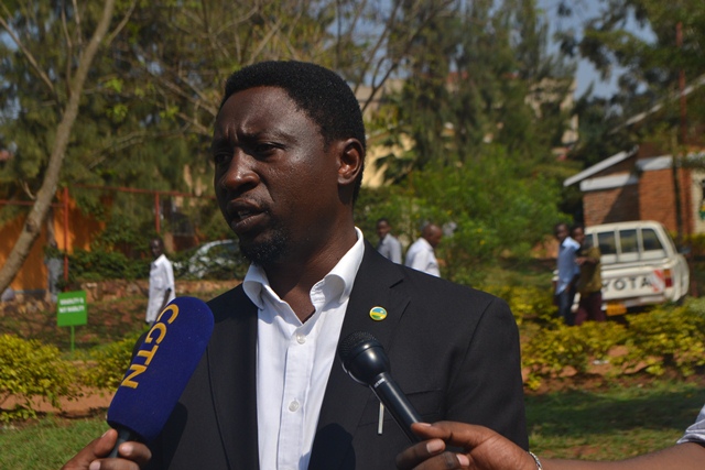 Green Party flag bearer Frank Habineza speaks to the media after casting his vote at Groupe Scolaire Kimironko II in Kigali. File.
