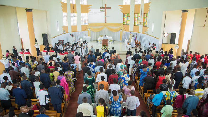 A congregation during Good Friday mass in commemoration of the crucifixion and death of Jesus Christ at Regina Pacis Catholic parish in Remera, yesterday. The day is observed during Holy Week preceding Easter Sunday, which marks the resurrection of Jesus. Across Rwanda, as elsewhere in the world, Christians, especially the Catholics, headed to their respective places of worship to observe the day. Sam Ngendahimana.