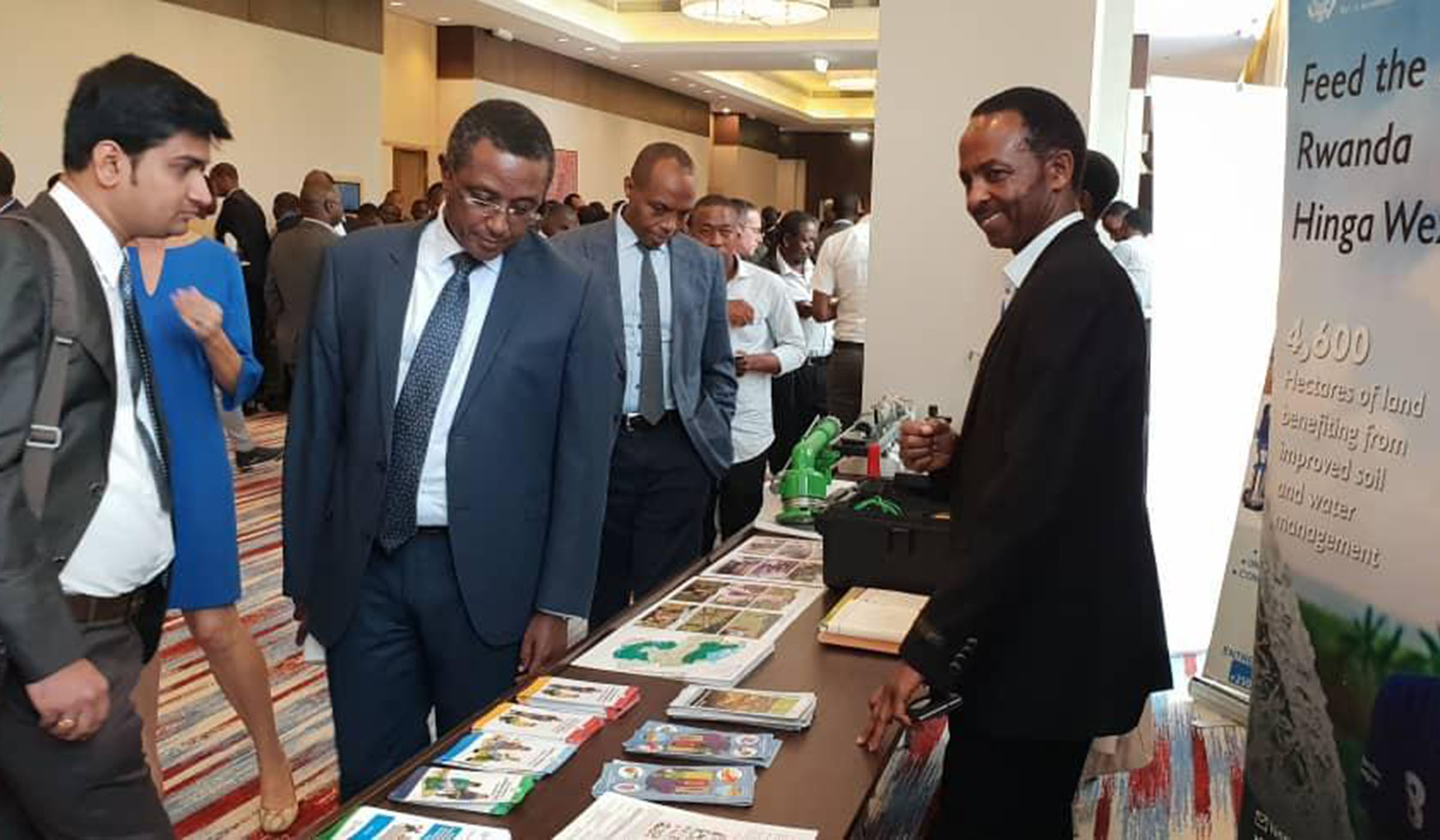 Environment minister Biruta (centre) at one the stands at the opening of the two-day Integrated Water Resources Management Conference in Kigali yesterday. Courtesy.