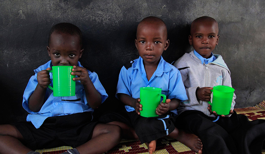Children take porridge at Mageragere Early Childhood Development Centre. File.