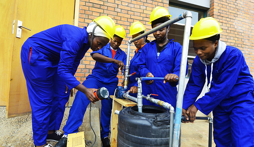 Students in TVET during a practical exercise at Musanze TVET school . / Sam Ngendahimana