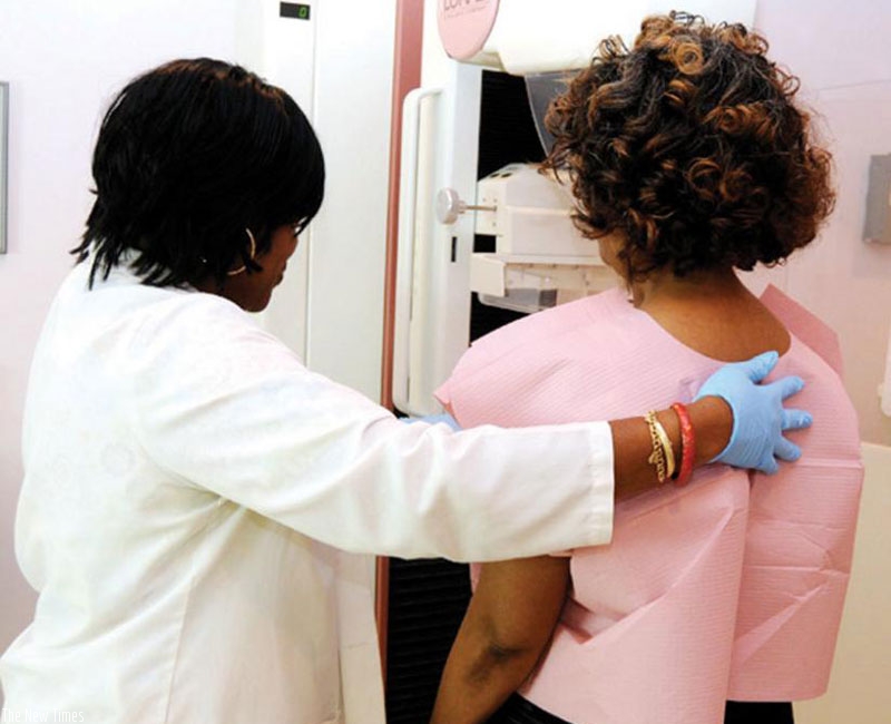 A woman gets screened for breast cancer. Net.
