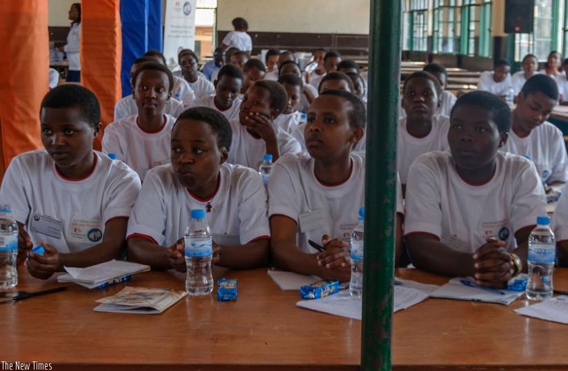 Students follow proceedings during a conference at FAWE Girls school in Kigali. (File)