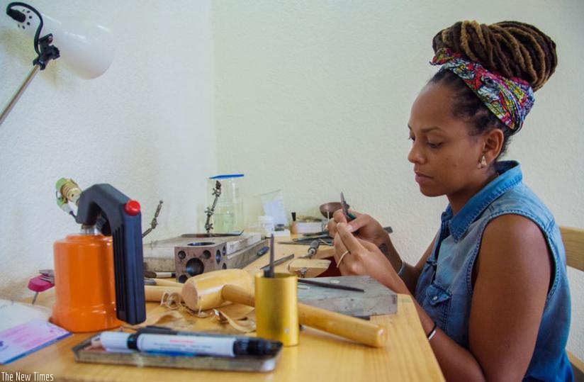 Founder of K-Tsobe, Sarafina Legrand in her jewellery workshop in Kigali. (F. Niyigena)