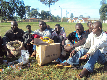 Suspected Marijuana dealers paraded by police yesterday (Photo; S. Rwembeho)