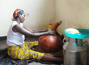 Esperance Mukagatare makes butter traditionally. Photo S Rwembeho