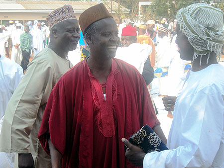 Sheikh Jusuf Bizuru (C) chatting with Ahamid Badal (R) after the prayers (Photo S. Rwembeho)