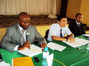 Permanent Secretary Ernest Ruzindaza and Dr. Ephraim Kabaija (L) during the meeting (Photo;S. Rwembeho)