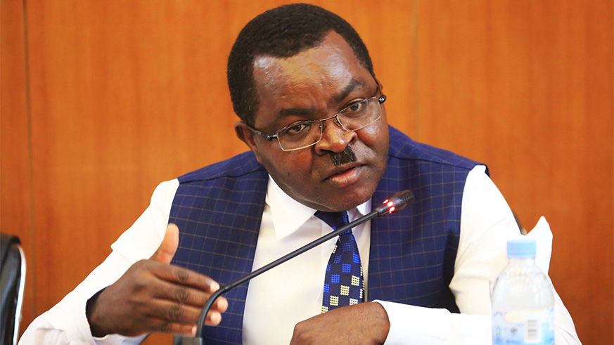 Minister Munyeshyaka speaks to the media (Sam Ngendahimana)