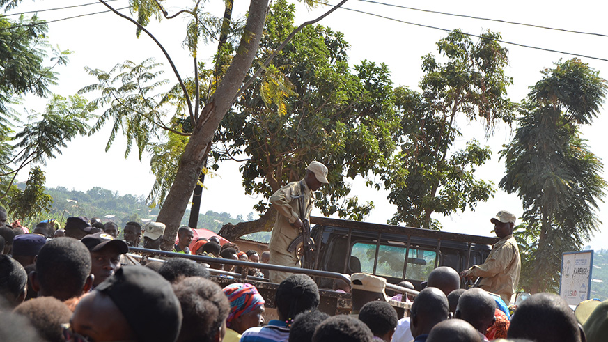 At least two thousand people from Karenge and beyond appeared at Karenge sector compound to follow the trial of their neighbour who killed his wife. Jean de Dieu Nsabimana.