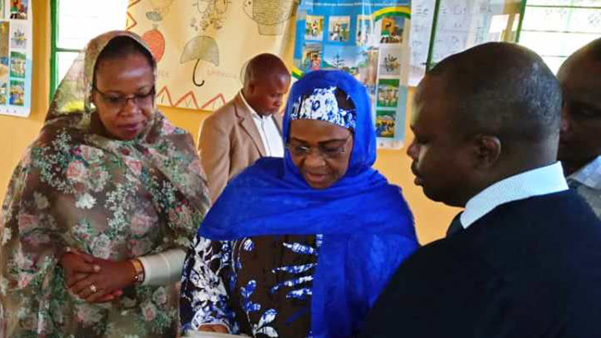 Minister Khalil (left) visits a classroom at ECD Nyagatovu in Kayonza District. Jean de Dieu Nsabimana.