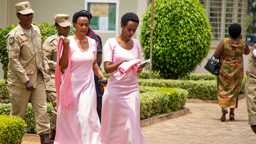 Sithembiso Nyoni (left) and Francois Ngarambe at RPF Headquaters yesterday. Photo/ Sam Ngendahimana