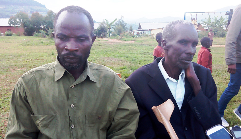 Sylvestre Rwasa (Left) sitting together with Jean Nepomscene Kayibanda. Marie Anne Dushimimana