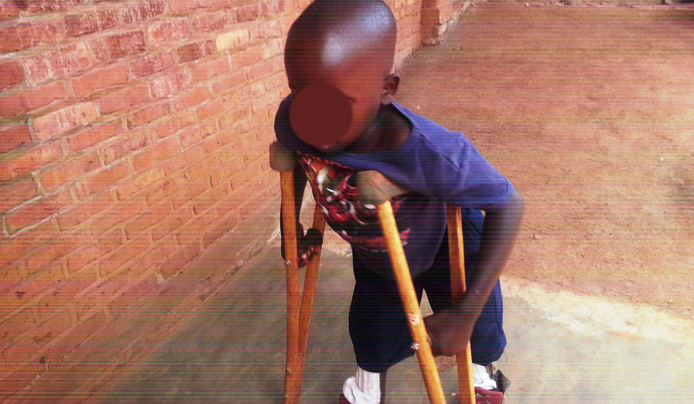 Aimu00e9 Irimaso walking on a pathway reserved for children with disabilities at G.S Bumbogo.  Marie Anne Dushimimana.