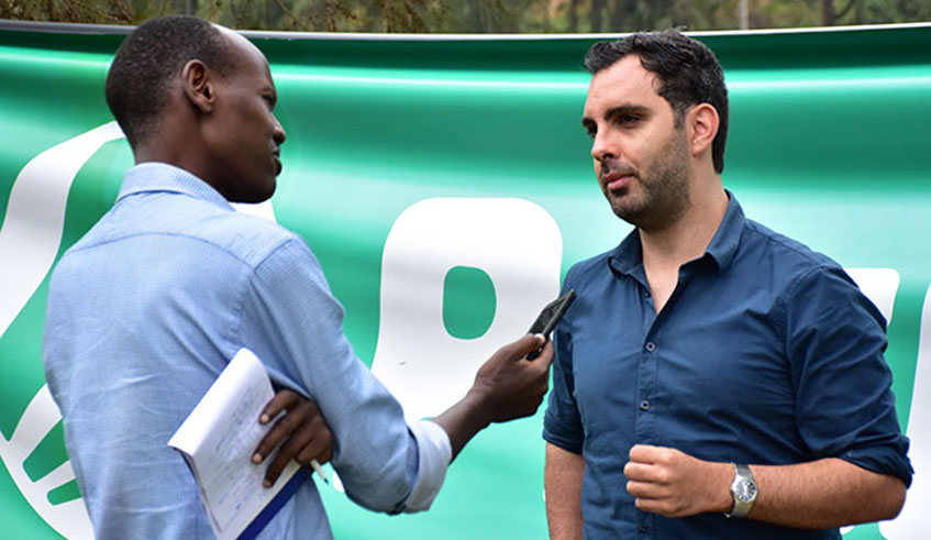 Mario Z. (R), the Chief Executive of Premier Bet Rwanda. File.
