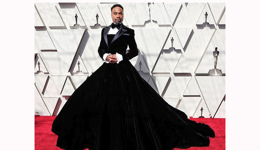 Broadway star Billy Porter, in a tuxedo-themed gown that's still provoking comments on social media, hours after it first made a splash on the red carpet. Net.