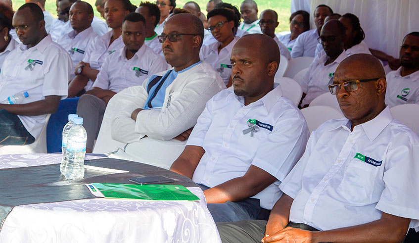 KCB staff follow a Genocide victim giving his testimony during the commemoretion event at Nyanza Genocide Memorial in Kicukiro District. Craish Bahizi.