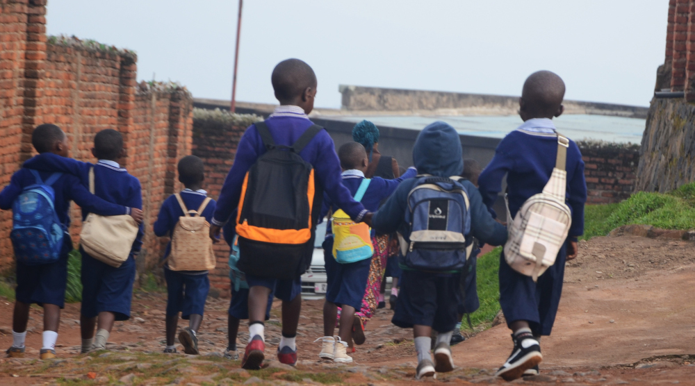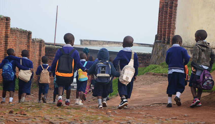 Pupils on their way to school. Private schools have been faulted for ignoring Ministerial orders to have Kinyarwanda as a medium of instruction. / File