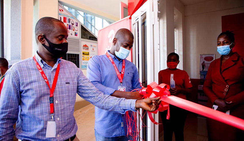 Airtel officials inaugurate  7 brand new Service centres and 30  AirtelMoney branches in Kigali yesterday. / Photo: Courtesy.