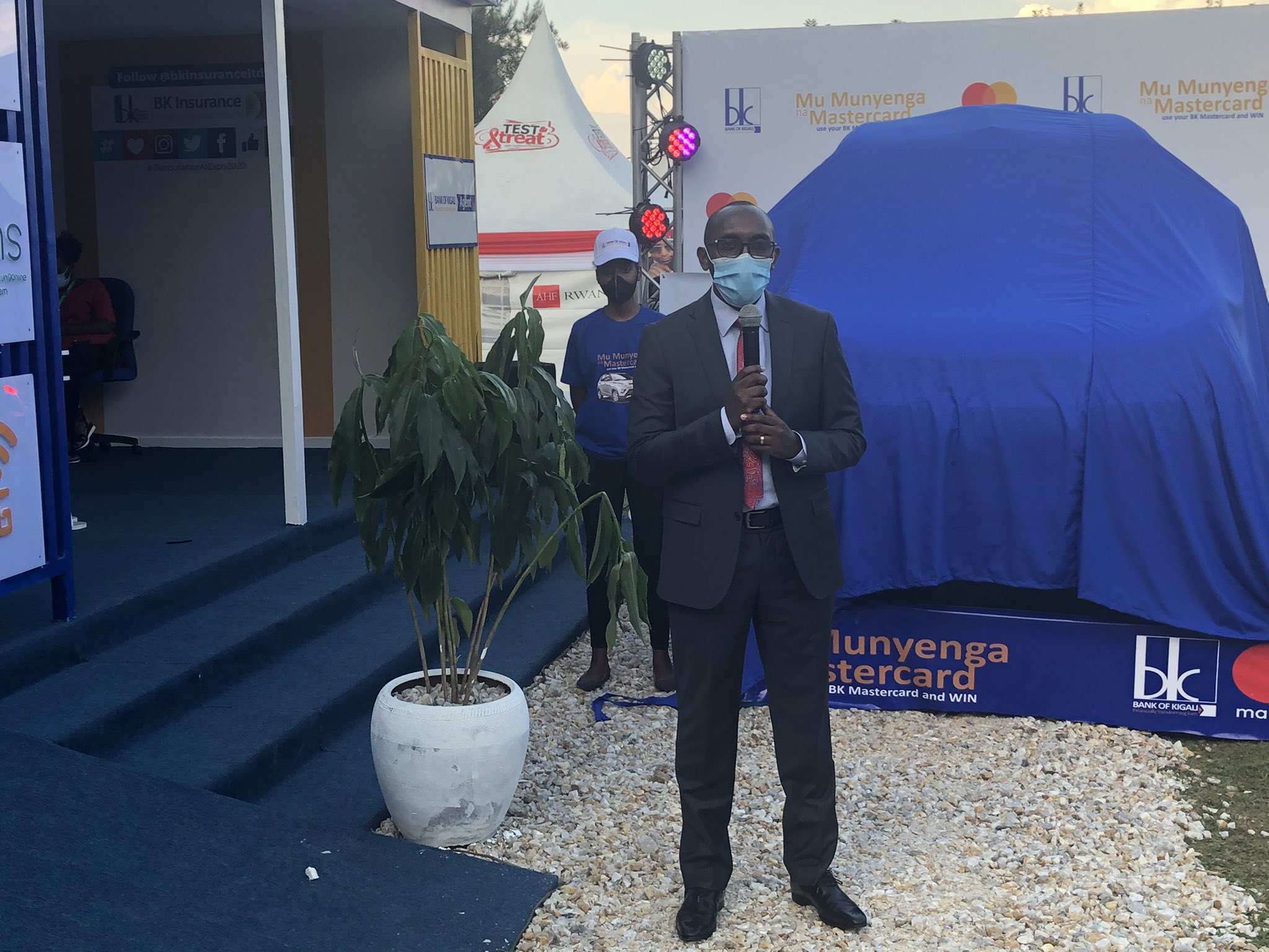 Benjamin Mutimura, Chief Commercial Officer of BK, speaking at the launch ceremony of  new campaign dubbed u2018Mu Munyenga na Mastercardu2019 that seeks to encourage cashless payment. / Courtesy