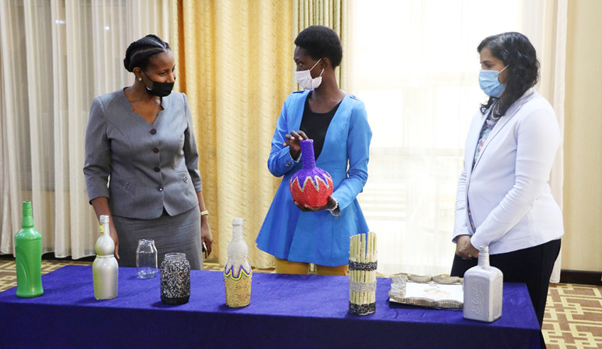 Delegates interact with an exhibitor at a mini-expo at Lemigo Hotel in Kigali on Thursday, August 26. / Photo: Courtesy
