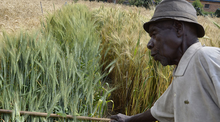 A wheat farmer inspects his plantation in Musanze District on January 26, 2017.