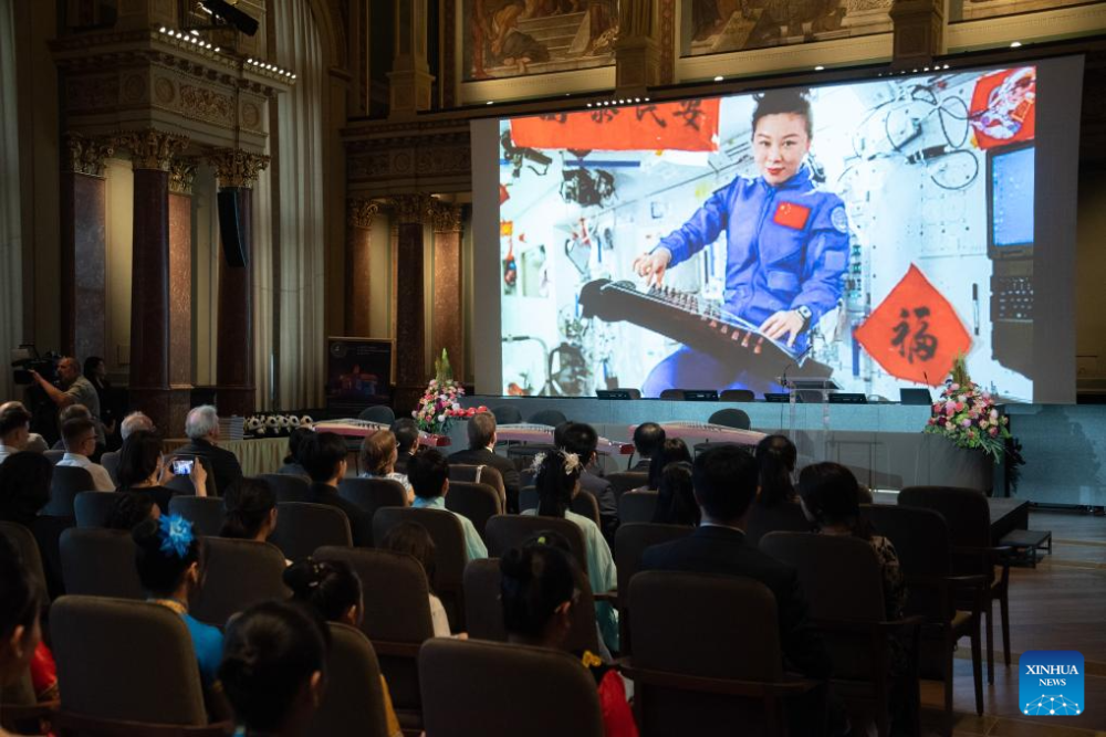 More than 300 students, scientists, and government officials gathered Friday at the Hungarian Academy of Sciences for a special space science Q&A session with Chinese astronauts aboard the Tiangong space station. (Photo by Tamas Szigeti/Xinhua)