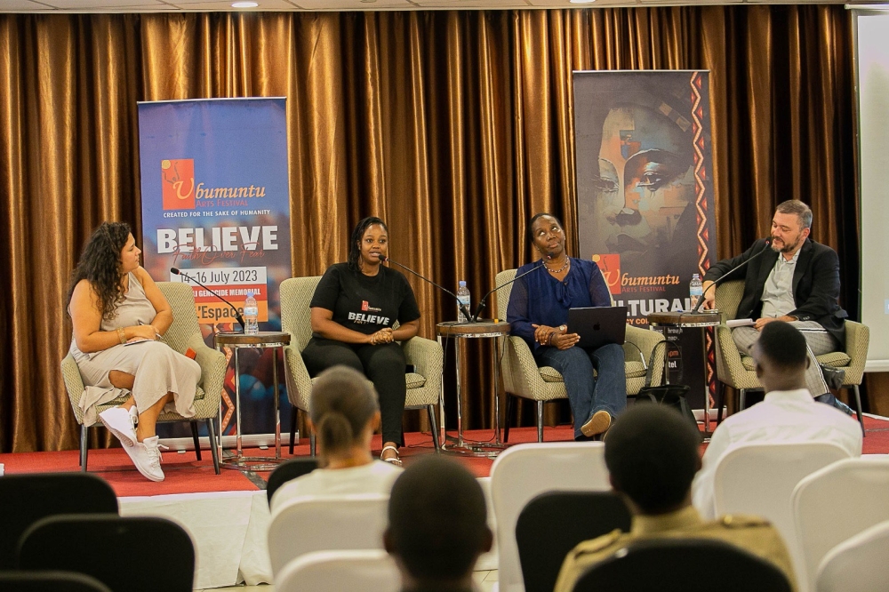 L-R: Ambassador Robert Masozera, Director General of the Rwanda Cultural Heritage Academy, Melody Sango, Programme Manager for Culture Connects at the British Council’s Sub-Saharan Africa Arts, Jemima Kakizi, a multidisciplinary artist and curator, Anne Mazimhaka, Creative Director at Illume studio and Dida Nibagwire, co-founder and director at L’espace.