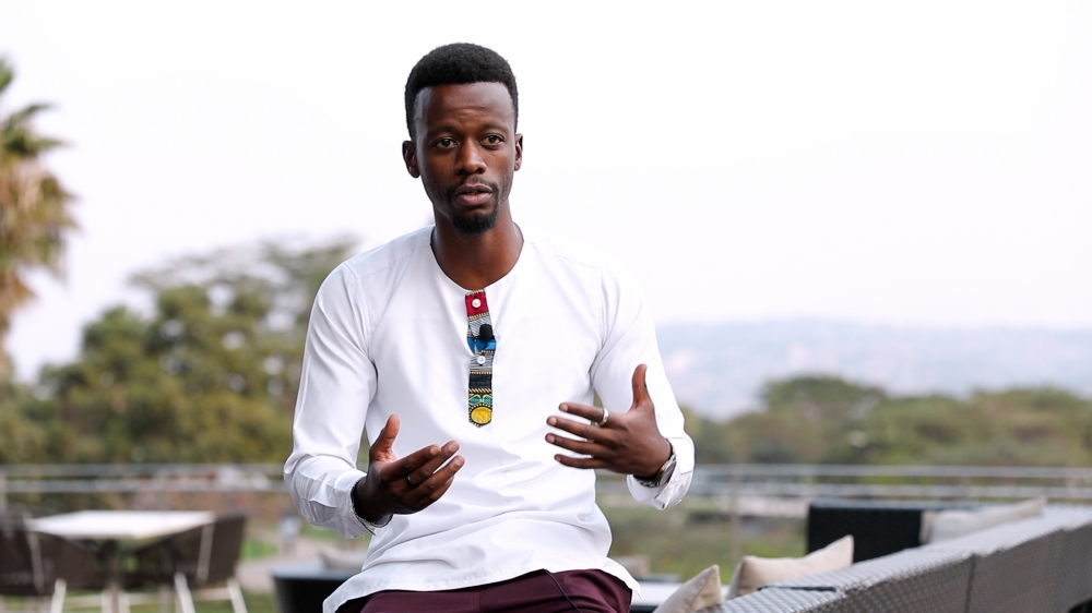 Arthur Mukembo, the Future Lab Studio Lead at The Innovation Village, while speaking from the Better Future Stage booth at the Mobile World Congress in Kigali, on Wednesday, October 18. Photo by Nadia