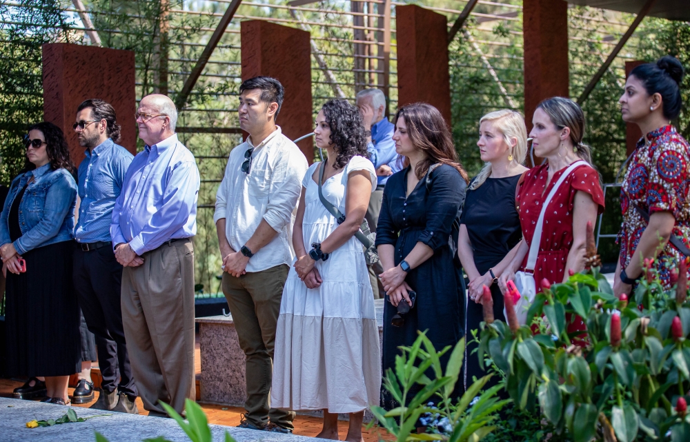 (L-R) Ambassador Alexander Polyakov of Russia, High Commissioner Alison Heather Thorpe of the United Kingdom, High Commissioner Mridu Pawan Das of India, Ambassador Mauro Massoni of Italy, (L-R) Ambassador Fátima Yesenia Fernandes Juárez of Venezuela, Ambassador Enrique Javier Ochoa Martínez of Mexico, Ambassador Genţiana Şerbu of Romania and Ambassador Ruslan Rafael oglu Nasibov of Azerbaijan. Photo by Village Urugwiro