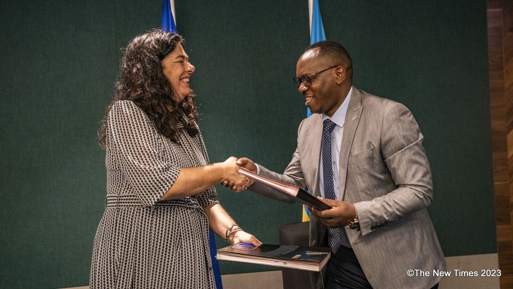 (L-R) Remy Muhire,from Pindo, Angelo Gitego, the Chief Executive at Xana Health (former Ivuriro Tech) and Angela Homsi, the Angaza Capital president. Courtesy