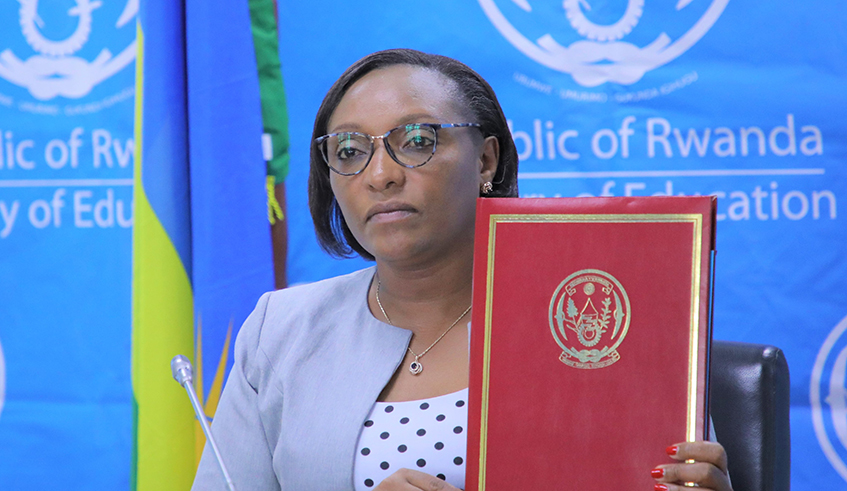 The Minister of Foreign Affairs and International Cooperation, Dr Vincent Biruta (right), and his Djiboutian counterpart Mahamoud Ali Youssouf exchange documents during the signing of three bilateral agreements between Rwanda and
