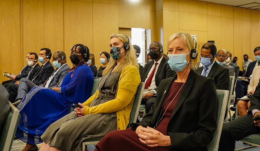 Uganda's Minister of Foreign Affairs, Gen. Odongo Jeje Abubakhar speaks at the Rwanda-Uganda business forum in Kigali, on the sidelines of the eleventh Rwanda-Uganda Joint Permanent Commission in Kigali on March 24. Photos by Olivier Mugwiza