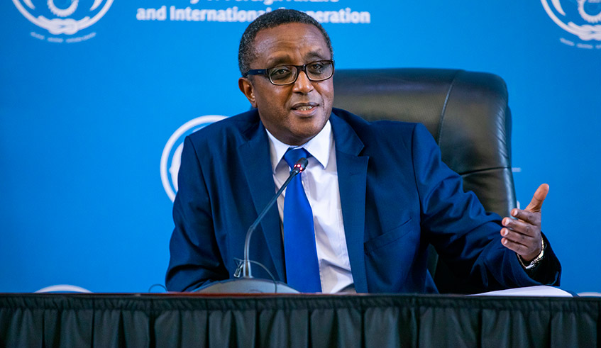 Ngabitsinze speaks at the opening of the Ghana-Rwanda Business Forum in Ghana on October 26. Photo: Courtesy.
