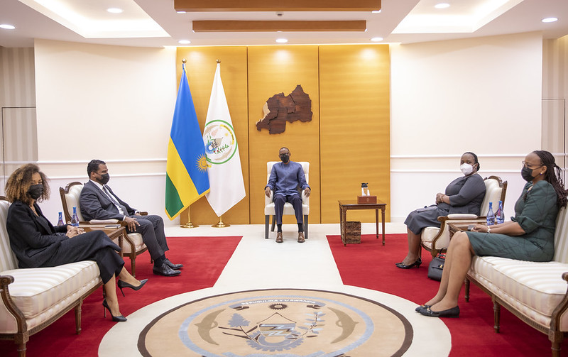 Kagame pays a courtesy call on Sandra Mason, President of Barbados.