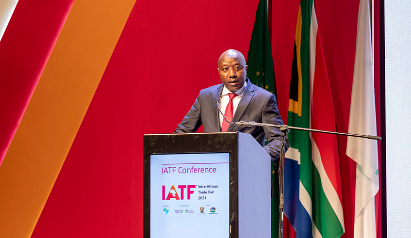 President Kagame addresses fellow leaders at the EU-AU Summit in Brussels, Belgium on Thursday, February 17, 2022. The Head of State called for a meaningful relationship that produces tangible results for peoples of the two continents. / Photo: Village Urugwiro.