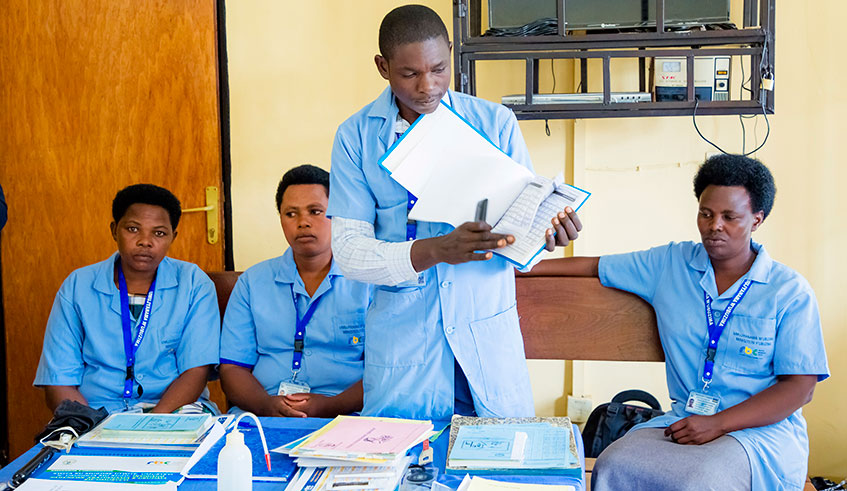 Stock brokers trade at Rwanda Stock Exchange yesterday. Photo: