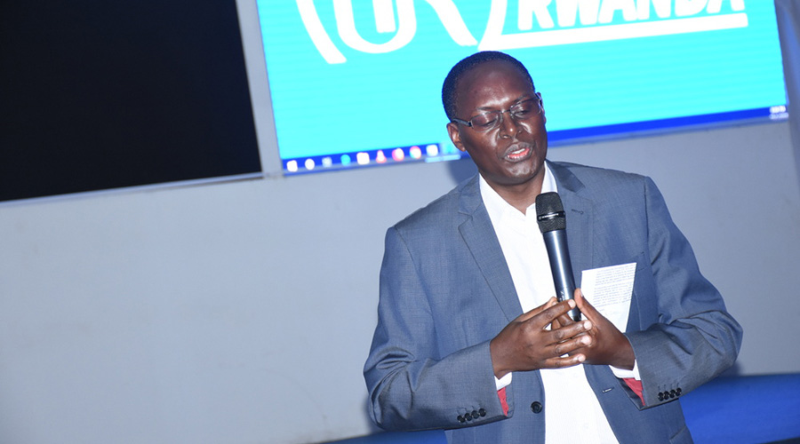 RURA Director General Patrick Nyirishema speaks to media as Rwanda Energy Group (REG) chief executive, Ron Weiss  looks on yesterday.