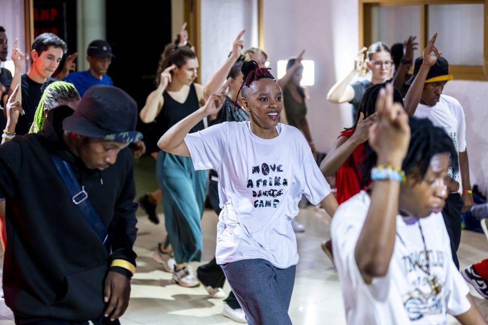 Rwandan international basketball coach Ali Rugira gives instructions to young children during a coaching course. The 27-year-old basketball tactician prepares young players to become future basketball talents. Courtesy