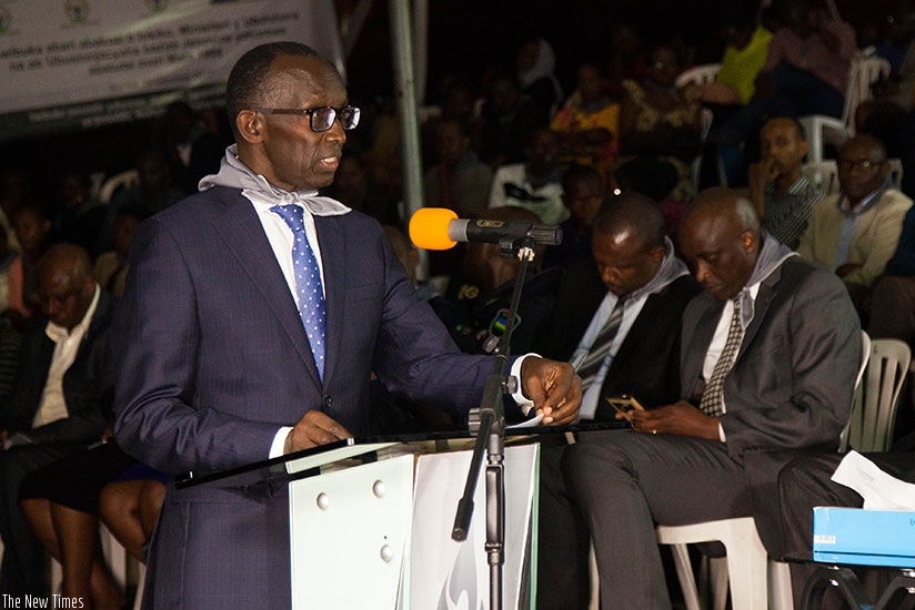 Pascal Bizimana Ruganintwali, the Commissioner General of Rwanda Revenue Authority, speaks during the meeting in Kigali yesterday. Emmanuel Kwizera.