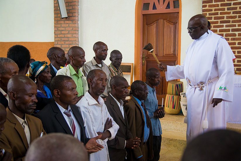 Minister for Environment, Dr. Vincent Biruta, speaks to journalists during the u2018specialu2019 Umuganda to restore wetlands in Nduba Sector yesterday. Emmanuel Ntirenganya.