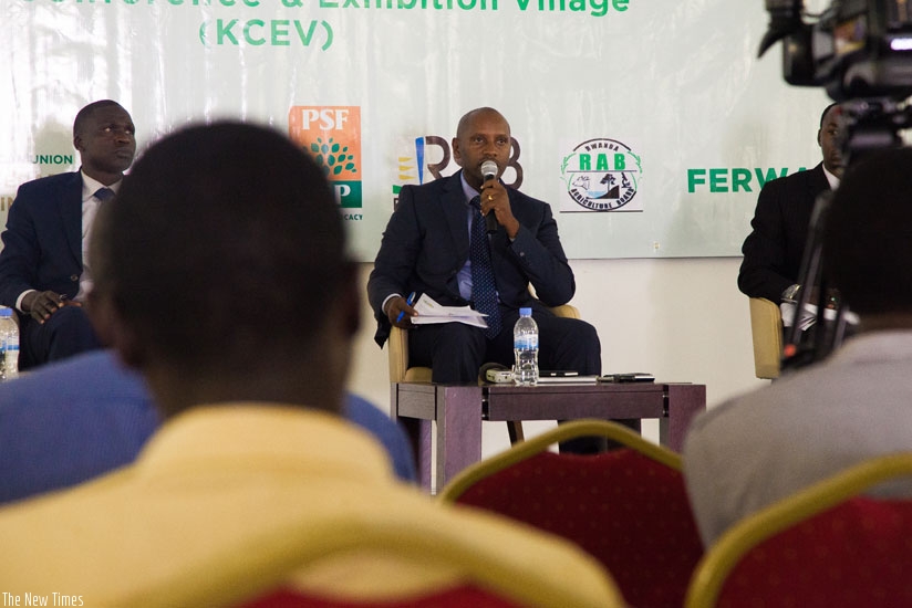 The Director of Pension and Pre-Retirement Benefits Department Oswald Munyandekwe speaks during the news briefing yesterday.  Sam Ngendahimana.
