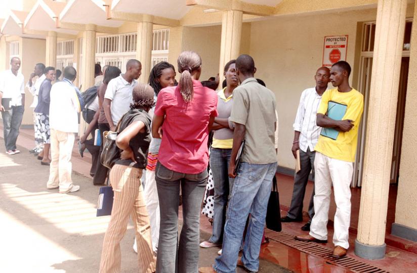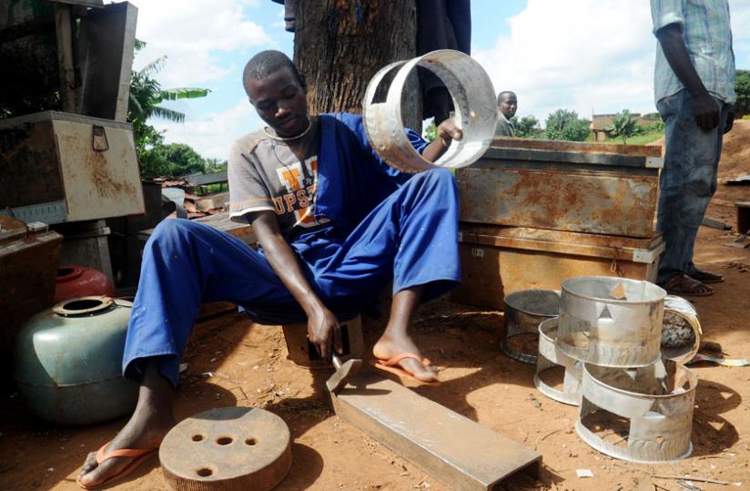 Students of IPRC Kigali make energy saving cooking stoves on Wednesday. (Emmanuel Ntirenganya.)