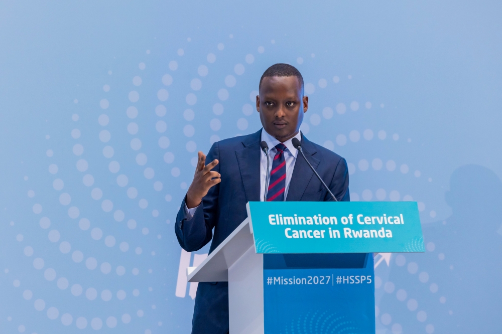 Rwanda’s Minister of Agriculture and Animal Resources, Mark Cyubahiro Bagabe, delivers remarks at the EAFF Congress in Kigali on September 30. Photo by Craish Bahizi