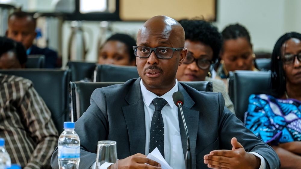 Minister of Agriculture and Animal Resources, Mark Cyubahiro Bagabe, speaks to journalists during the meeting focused on strengthening Rwanda’s agricultural exports, on August 14, 2025, in Kigali (Emmanuel Ntirenganya)